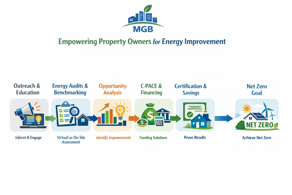 MGB is known for its work helping provide technical assistance for energy efficiency and renewable energy improvements as well as project financing. Now we go a step further with compliance, measurement and verified offsets & RECs for a pathway to Net-Zero.